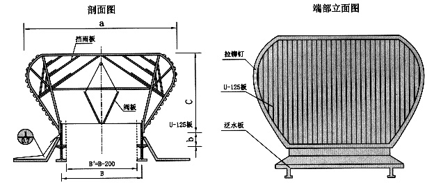 注:風荷載為1200Pa屋頂通風器每L 3米 組成一個單元,所以完整的屋頂通風器由兩個端頭單元和若干個中間單元組成,電源380V、 50Hz。